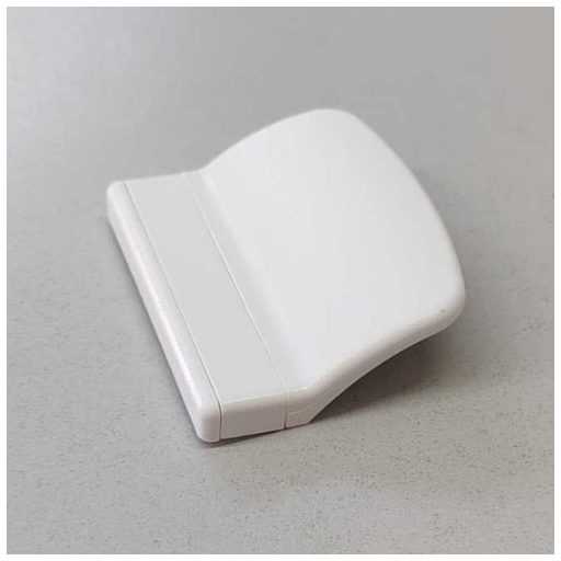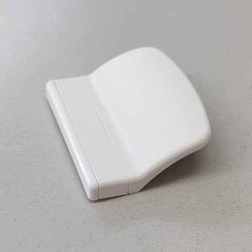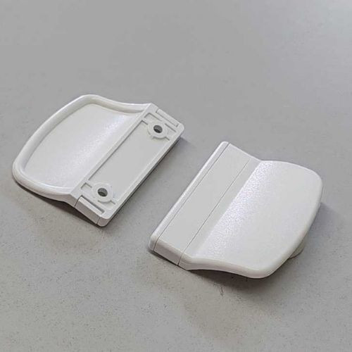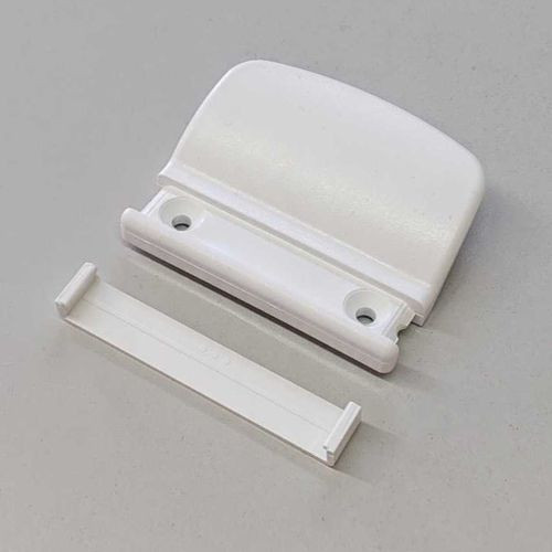 Csavarral rögzíthető szúnyogháló fogantyú fehér színben. A csavarokat eltakarja egy műanyag burkolat.